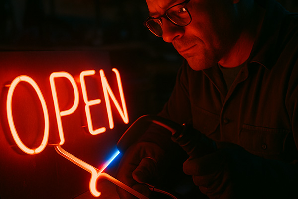 Explore the fascinating evolution of the open sign, from vintage hand-painted boards to modern digital display...